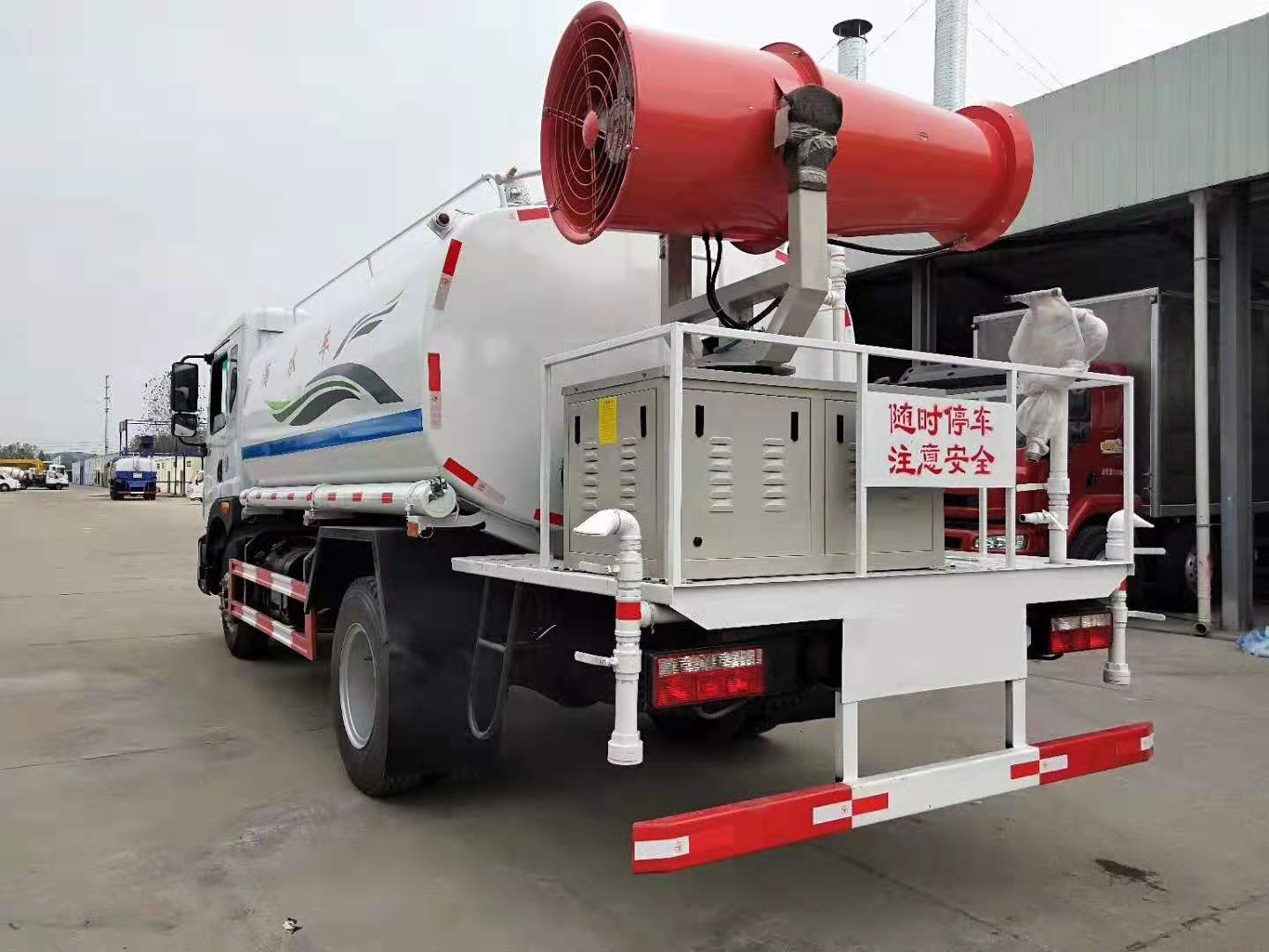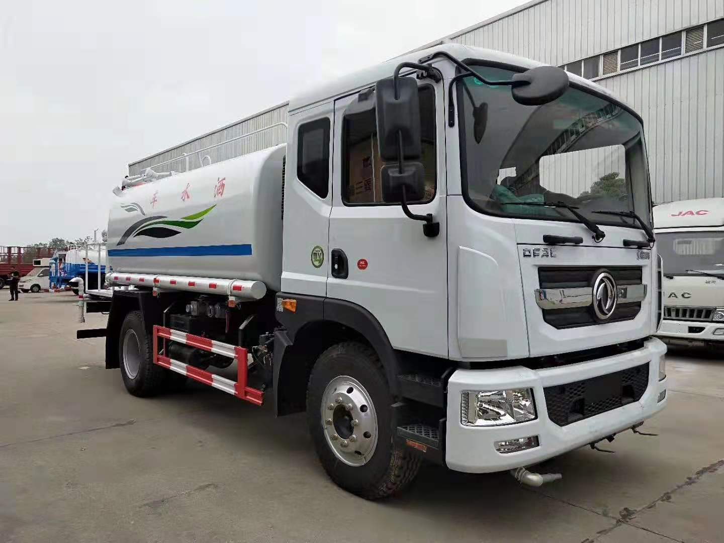 12噸東風(fēng)D9灑水車(chē)水罐上裝配置:罐體容積可依據(jù)車(chē)輛公告制作灑水車(chē),廠家標(biāo)準(zhǔn)罐體鋼板為4mm厚碳鋼Q235材質(zhì)(用戶也可選用不銹鋼板材),罐內(nèi)隔板具有防波作用,以減輕汽車(chē)行駛時(shí)罐體液體沖擊,罐體及整車(chē)外形尺寸按照公告。帶大功率專(zhuān)用灑水泵,可自吸自排,整車(chē)前沖、后灑、側(cè)噴、帶65消防接口,后平臺(tái)帶綠化灑水炮,灑水炮可全方位旋轉(zhuǎn),可連續(xù)調(diào)成直沖狀、大雨、小雨、毛雨;前封頭帶水位計(jì),后平臺(tái)主管路帶1付澆花接口,后爬梯。平臺(tái)后部帶小安全告知牌:“隨時(shí)停車(chē),注意安全”,帶兩根水管及陰陽(yáng)端。罐體顏色:上白下藍(lán),銀灰/銀藍(lán),罐體兩側(cè)噴“灑水車(chē)、綠化噴灑車(chē)”字樣,貼反光標(biāo)示。灑水車(chē)可加裝前沖后灑氣動(dòng)閥駕駛室控制、可加裝霧炮機(jī)組發(fā)電機(jī)組噴霧降塵裝置、車(chē)頭可加裝推雪雪鏟、雪滾裝置街道、公路除雪等。