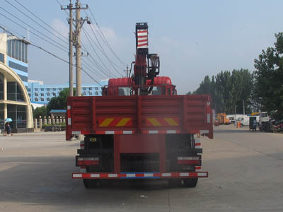 該車上裝選裝折臂式吊機;吊機型號,質量,最大起升載荷,整備質量,額定載質量分別對應為SQ3.2S:1150Kg/3200Kg/4250Kg/3835Kg;SQ3.2Z:1080Kg/3200Kg/4200Kg/3885Kg;SQ4S:1220Kg/4000Kg/4350Kg/3735Kg;SQ4Z:1250Kg/4000Kg/4380Kg/3705Kg。隨底盤選裝駕駛室。防護材料:Q235A碳鋼,連接方式:左右側面及后下部防護均采用焊接連接,后部防護斷面尺寸(mm):100?0,后部防護離地高度(mm):500。發(fā)動機型號:YZ4DA2-40, CY4102-CE4C, YN38CRD1,YCD4F2L-130對應油耗值分別為(L/100km):18.12;17.93;18.94;17.50.ABS型號為:VIE ABS-II,生產(chǎn)廠家為:上海萬捷汽車控制系統(tǒng)有限公司.